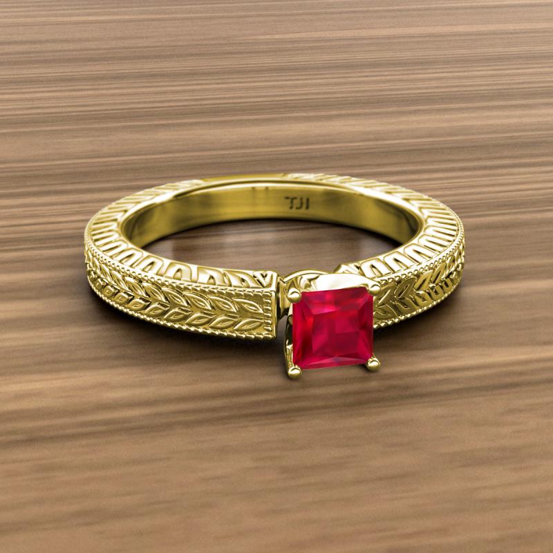 Princess Cut Lab Created Ruby 1.44 ct Engraved Milgrain Womens Solitaire Engagement Ring 14K Yellow Gold More Details ...