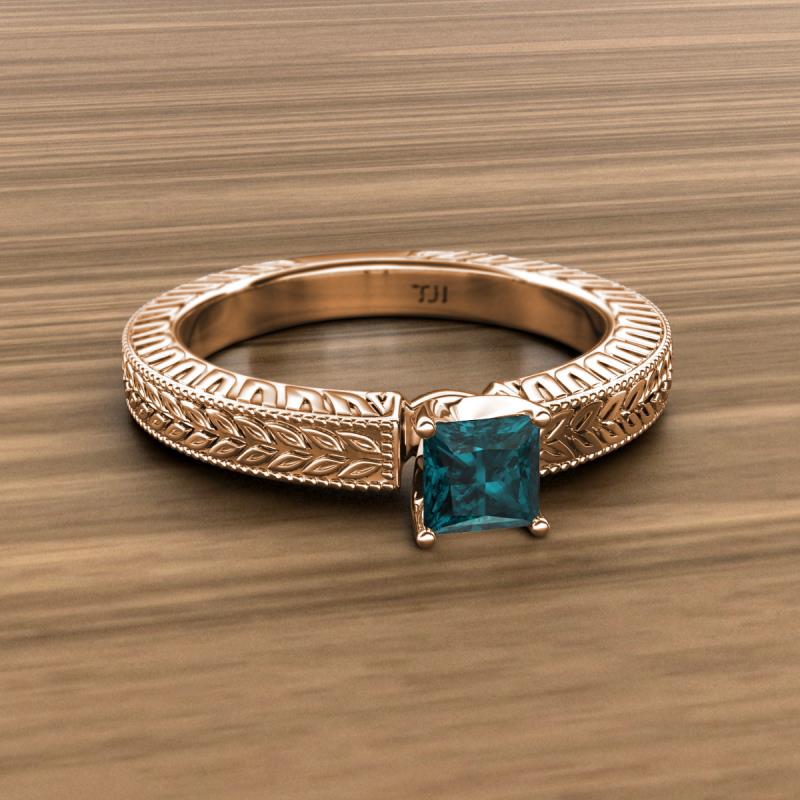 Princess Cut London Blue Topaz 1.40 ct Engraved Milgrain Womens Solitaire Engagement Ring 18K Rose Gold More Details ...