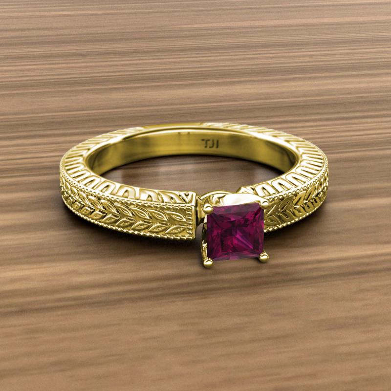 Princess Cut Rhodolite Garnet 1.20 ct Engraved Milgrain Womens Solitaire Engagement Ring 14K Yellow Gold More Details ...