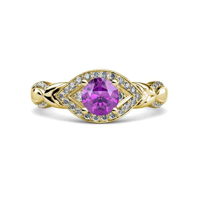 1 1/5 ctw Round Amethyst and Diamond Womens Engagement Ring 18K Yellow Gold More Details ...