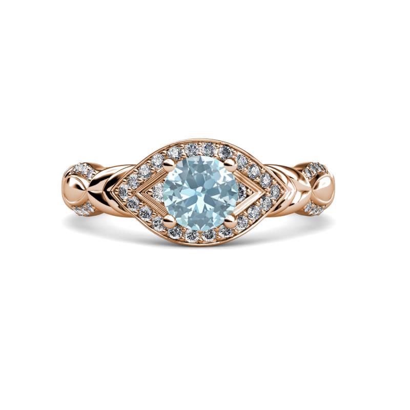 1 1/5 ctw Round Aquamarine and Diamond Womens Engagement Ring 18K Rose Gold More Details ...
