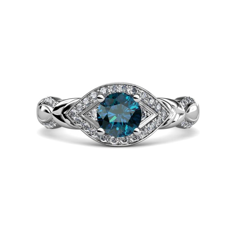 1 1/3 ctw Round Blue and White Diamond Womens Engagement Ring 18K White Gold More Details ...