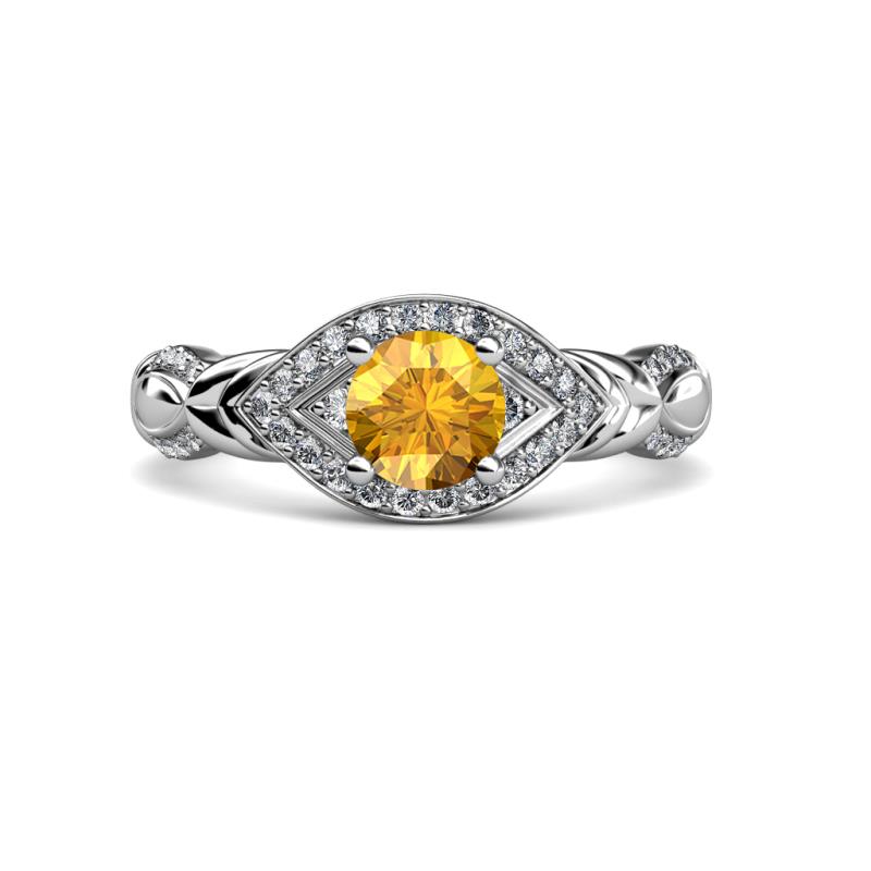 1 1/5 ctw Round Citrine and Diamond Womens Engagement Ring 18K White Gold More Details ...