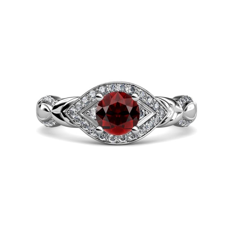 1 1/3 ctw Round Red Garnet and Diamond Womens Engagement Ring 18K White Gold More Details ...