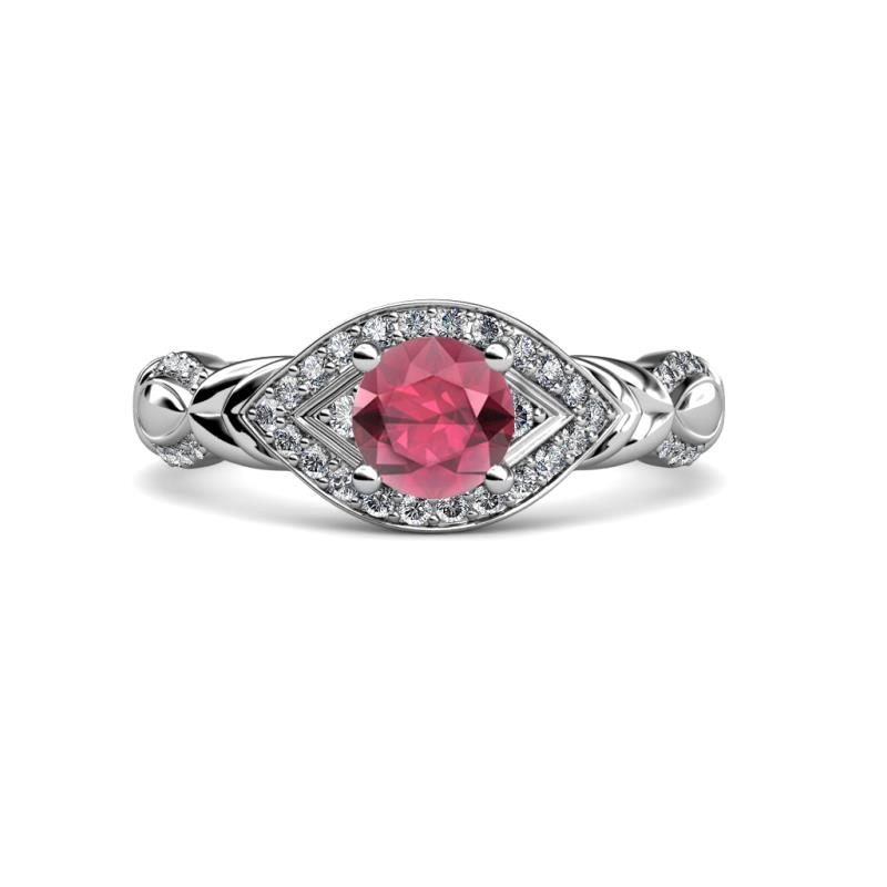 1 1/3 ctw Round Rhodolite Garnet and Diamond Womens Engagement Ring 18K White Gold More Details ...
