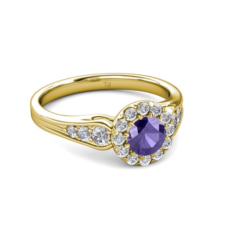 1 1/3 ctw Round Iolite and Diamond Cupcake Womens Halo Engagement Ring 18K Yellow Gold More Details ...