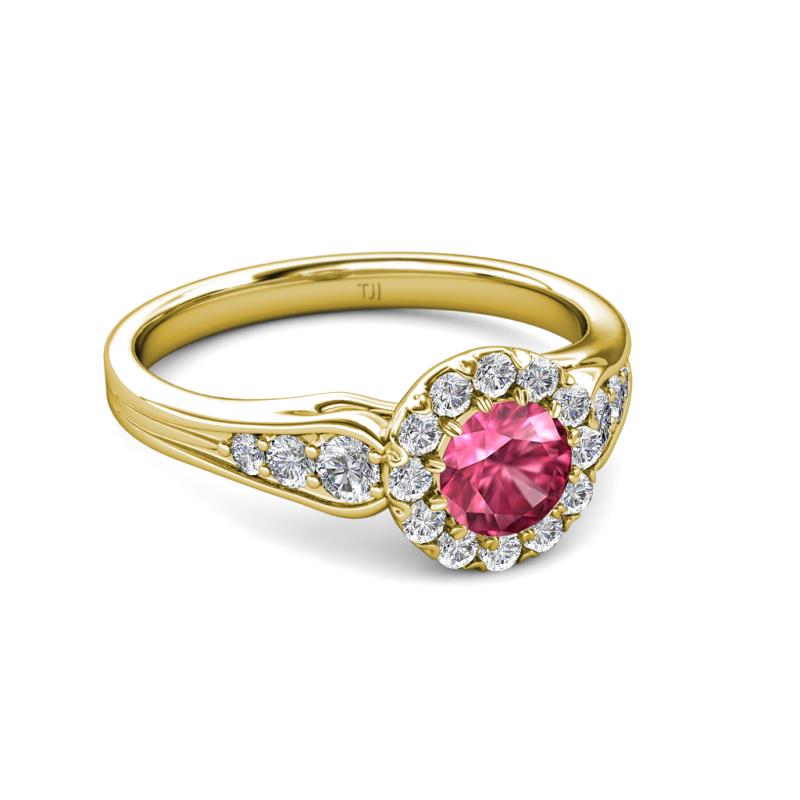 1 1/3 ctw Round Pink Tourmaline and Diamond Cupcake Womens Halo Engagement Ring 14K Yellow Gold More Details ...