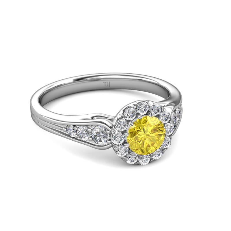 1 2/5 ctw Round Yellow Sapphire and Diamond Cupcake Womens Halo Engagement Ring 18K White Gold More Details ...
