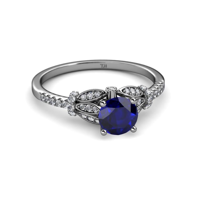 Blue Sapphire and Diamond Womens Engagement Ring 1.23 ctw 14K White Gold More Details ...