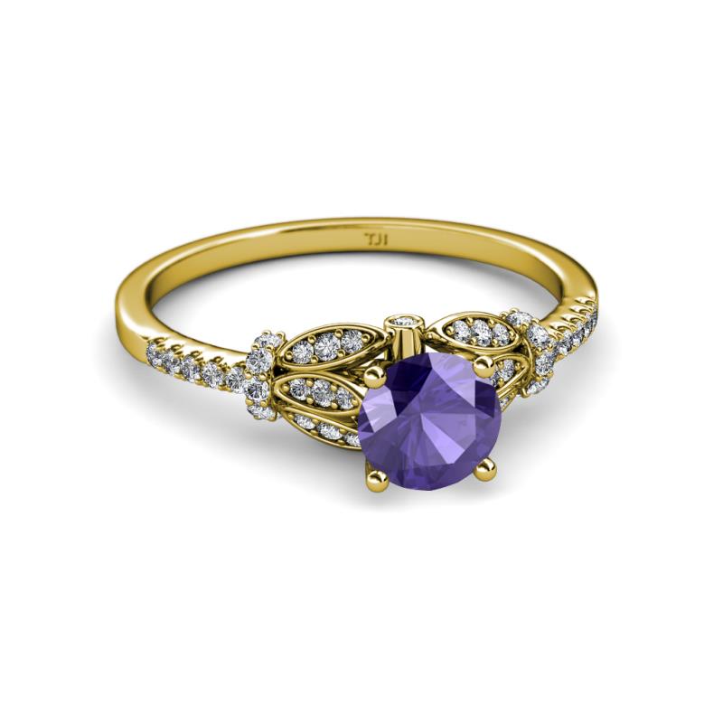 Iolite and Diamond Womens Engagement Ring 1.15 ctw 14K Yellow Gold More Details ...