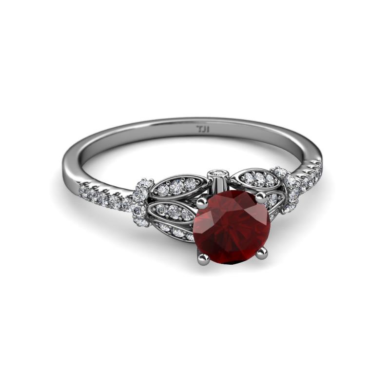 Red Garnet and Diamond Womens Engagement Ring 1.33 ctw 14K White Gold More Details ...