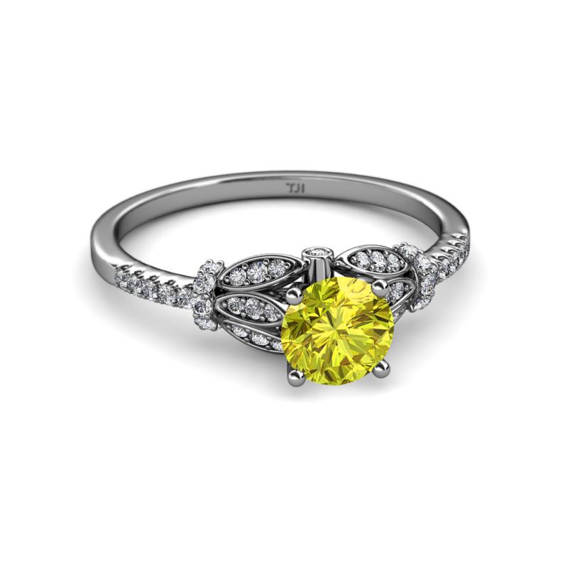 Yellow and White Diamond Womens Engagement Ring 1.28 ctw 14K White Gold More Details ...