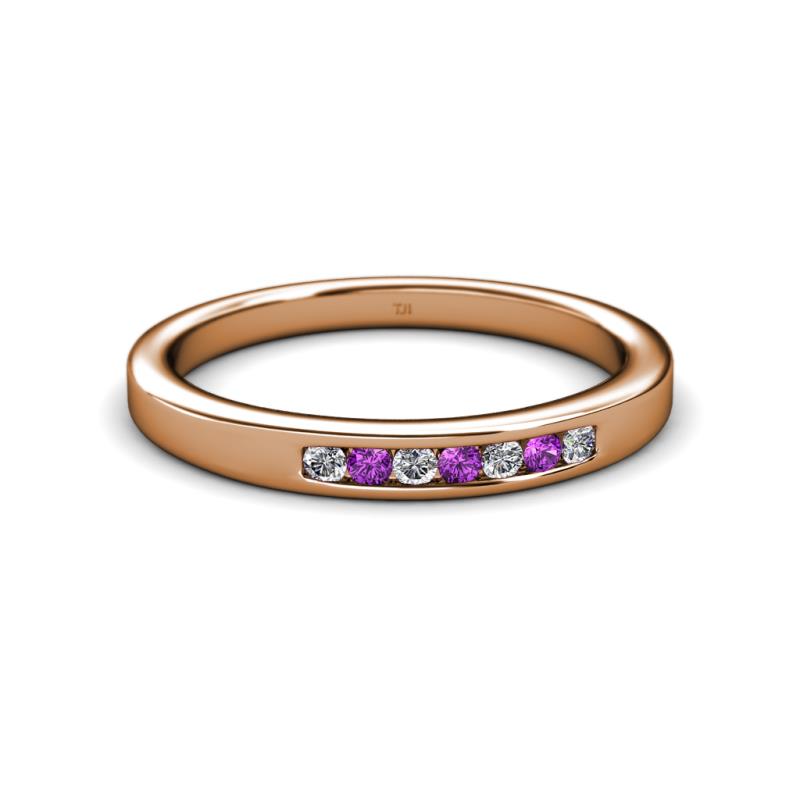Amethyst and Lab Grown Diamond 7 Stone Channel Set Womens Wedding Band Stackable 0.19 ctw 14K Rose Gold More Details ...