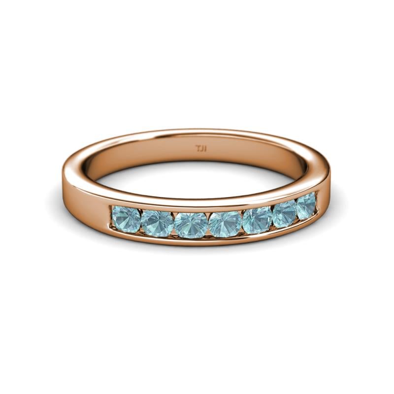 Aquamarine 7 Stone Channel Set Womens Wedding Band Stackable 0.73 ctw 10K Rose Gold More Details ...