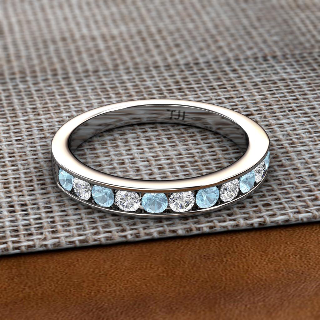 Aquamarine and Diamond 1 ctw 11 Stone Channel Set Womens Wedding Band Stackable Sterling Silver More Details ...