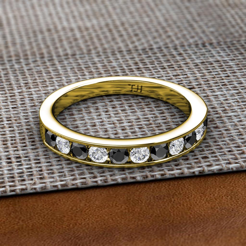 Black and White Lab Grown Diamond 1 1/6 ctw 11 Stone Channel Set Womens Wedding Band Stackable 10K Yellow Gold More Details ...
