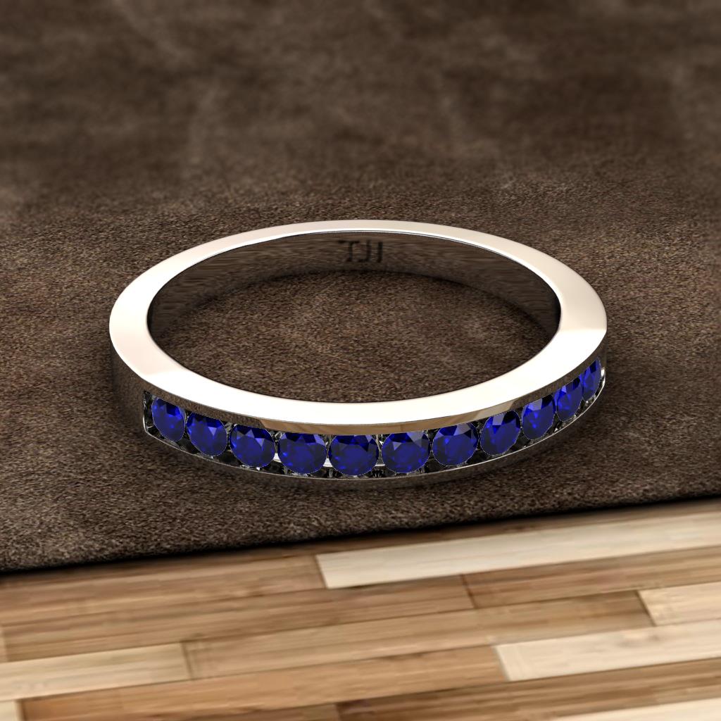 Blue Sapphire 11 Stone Channel Set Womens Wedding Band Stackable 0.35 ctw Sterling Silver More Details ...