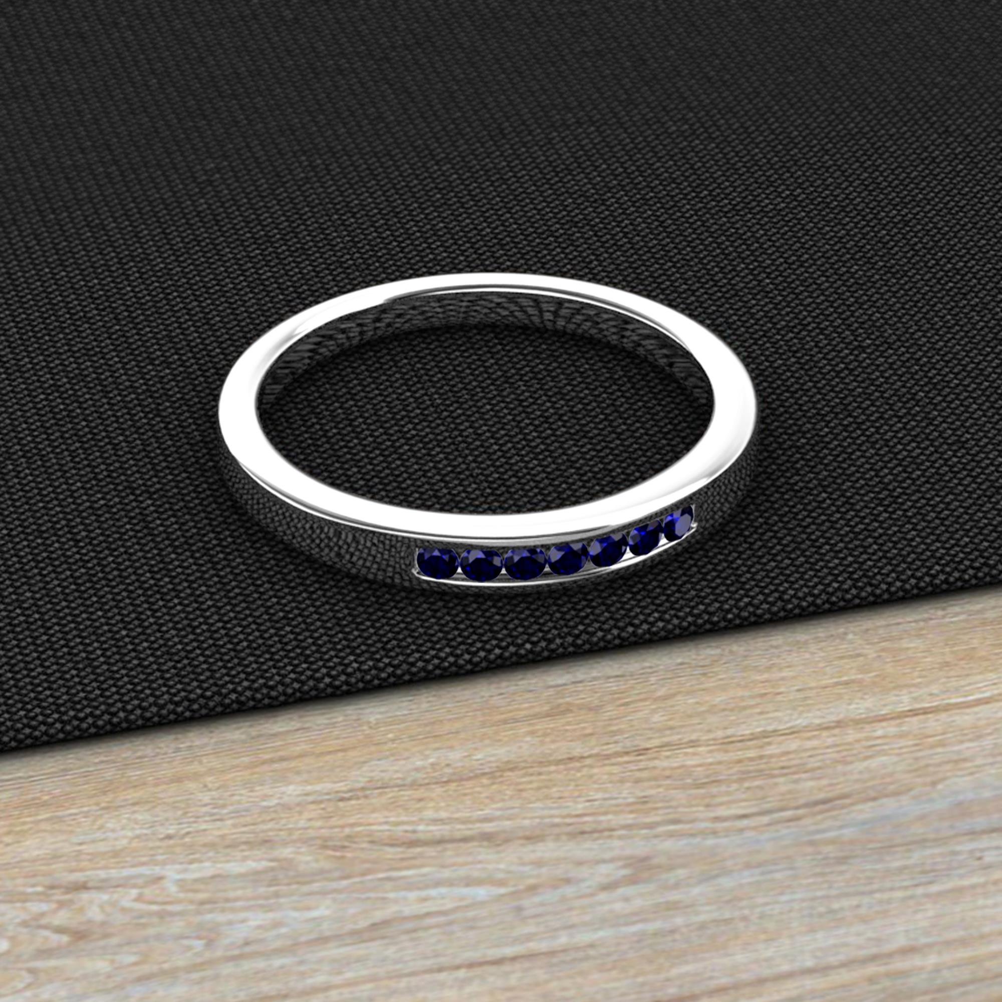 Get a perfect 7 Stone Wedding Band with Blue Sapphire embraced by channel setting to be an everlasting symbol of your love which can be cherished for the lifetime.