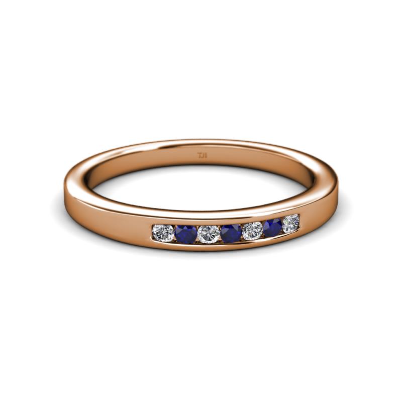 Blue Sapphire and Diamond 7 Stone Channel Set Womens Wedding Band Stackable 0.21 ctw 18K Rose Gold More Details ...