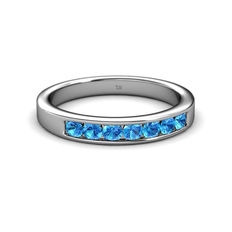 Blue Topaz 7 Stone Channel Set Womens Wedding Band Stackable 0.77 ctw 18K White Gold More Details ...