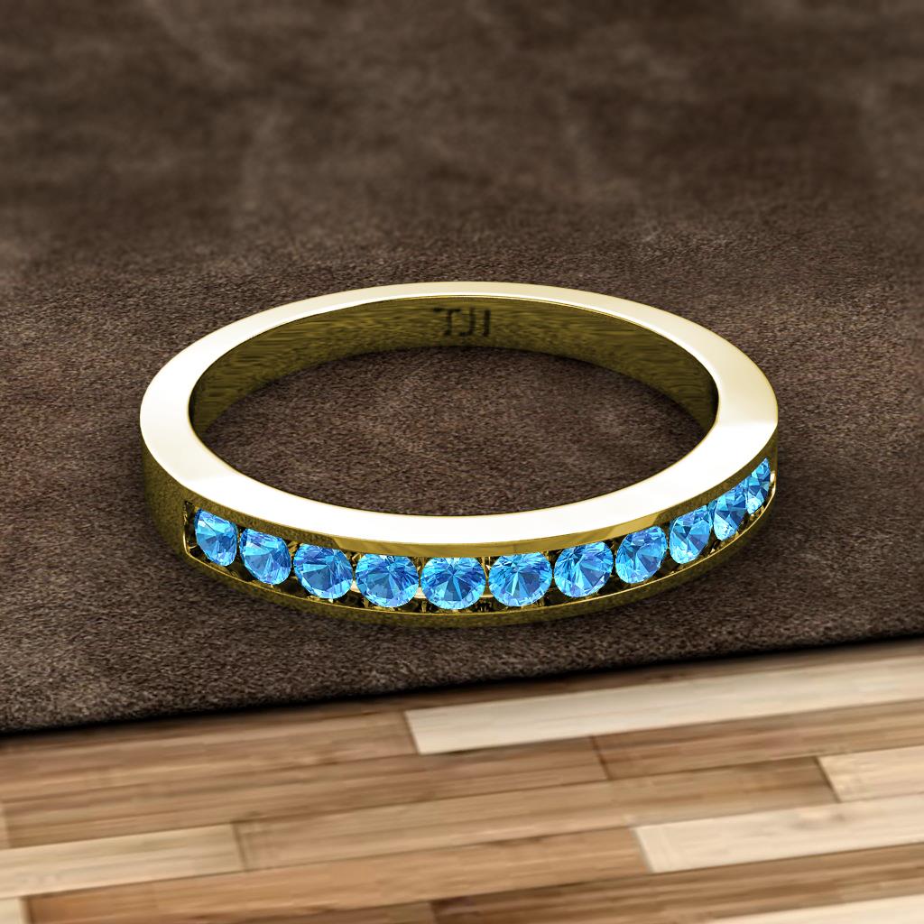 Blue Topaz 11 Stone Channel Set Womens Wedding Band Stackable 0.39 ctw 10K Yellow Gold More Details ...