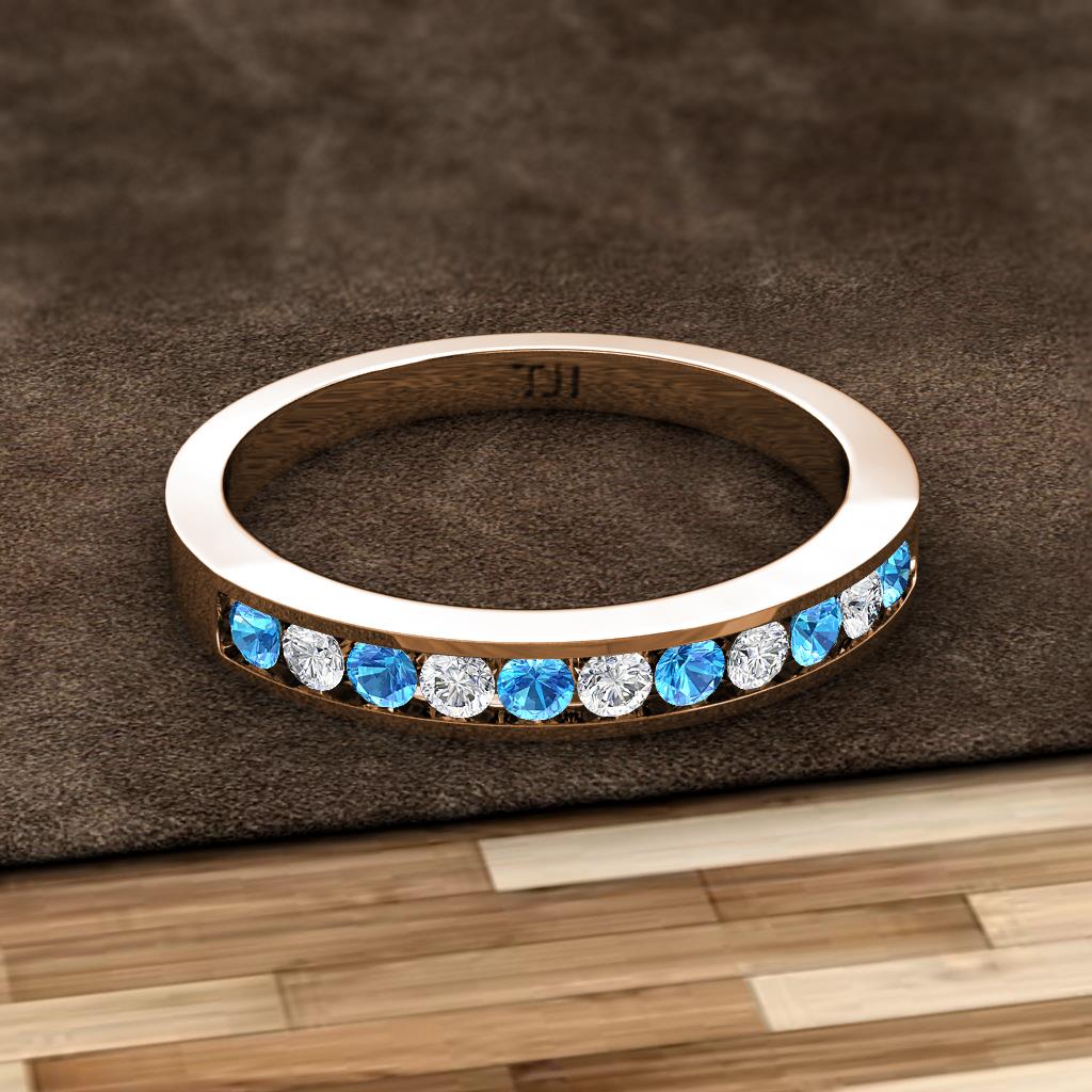 Blue Topaz and Diamond 11 Stone Channel Set Womens Wedding Band Stackable 0.36 ctw 10K Rose Gold More Details ...