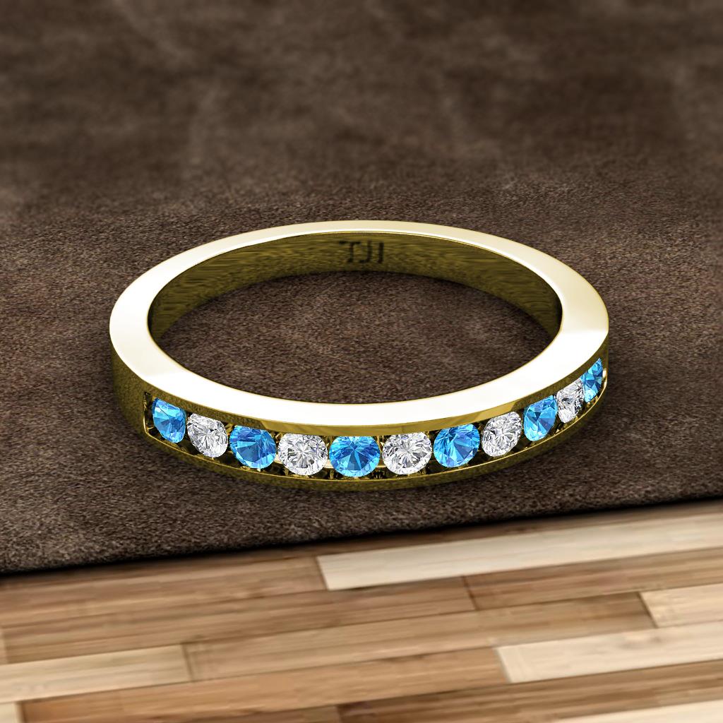 Blue Topaz and Lab Grown Diamond 11 Stone Channel Set Womens Wedding Band Stackable 0.30 ctw 10K Yellow Gold More Details ...