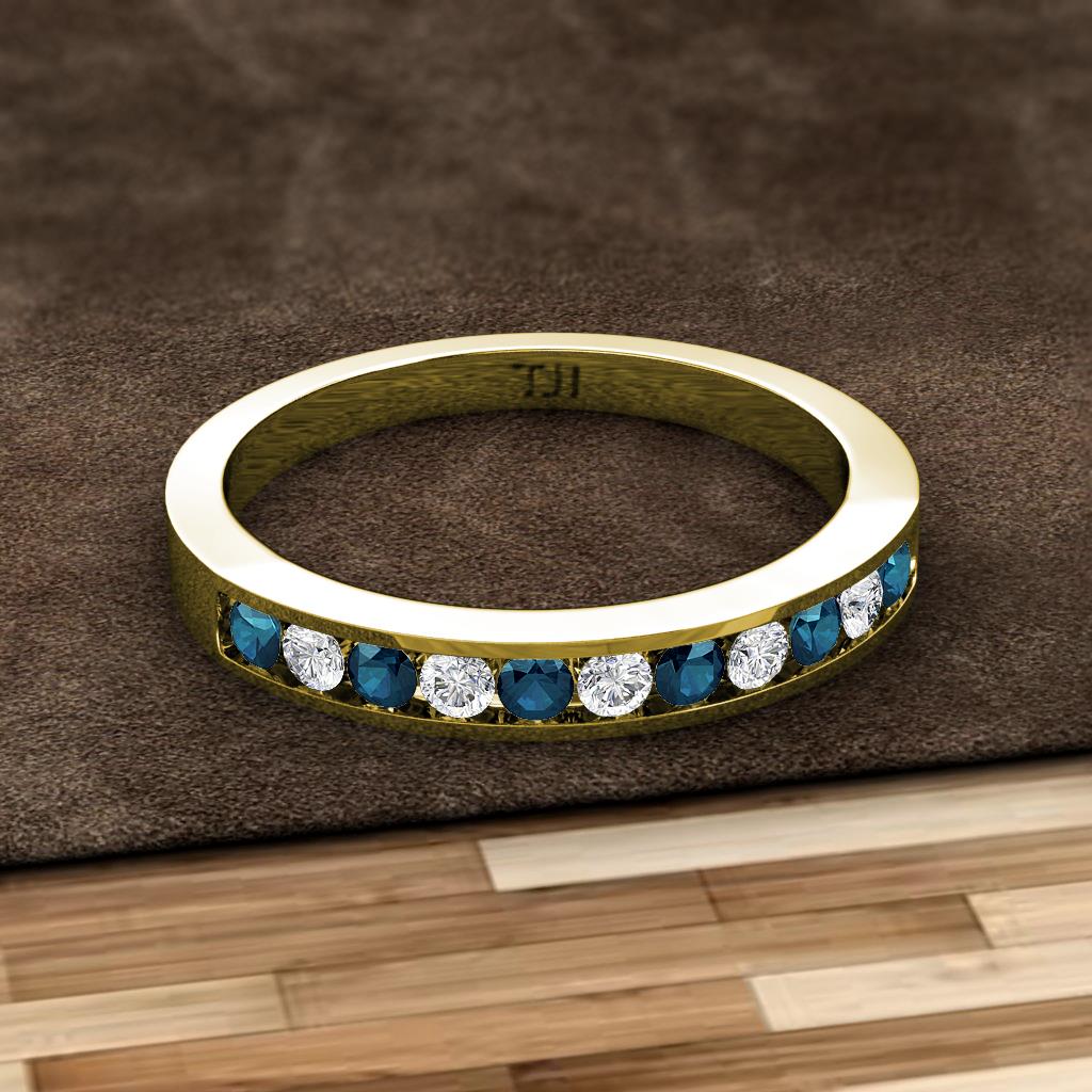 Blue and White Lab Grown Diamond 11 Stone Channel Set Womens Wedding Band Stackable 0.33 ctw 10K Yellow Gold More Details ...