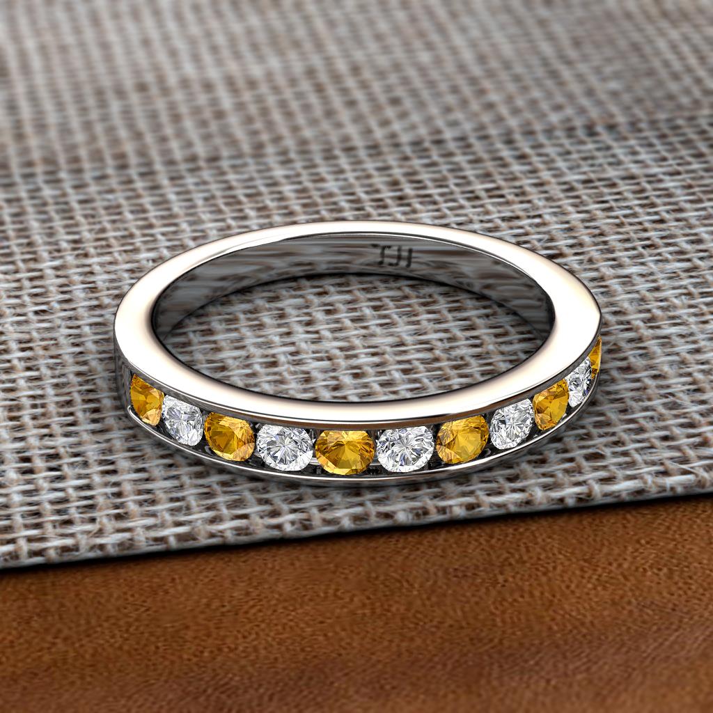 Let this enchanting 11 Stone Wedding Band put your Love into words with series of glittering Round Citrine and Lab Grown Diamond making your Wedding Vow Special & Memorable.