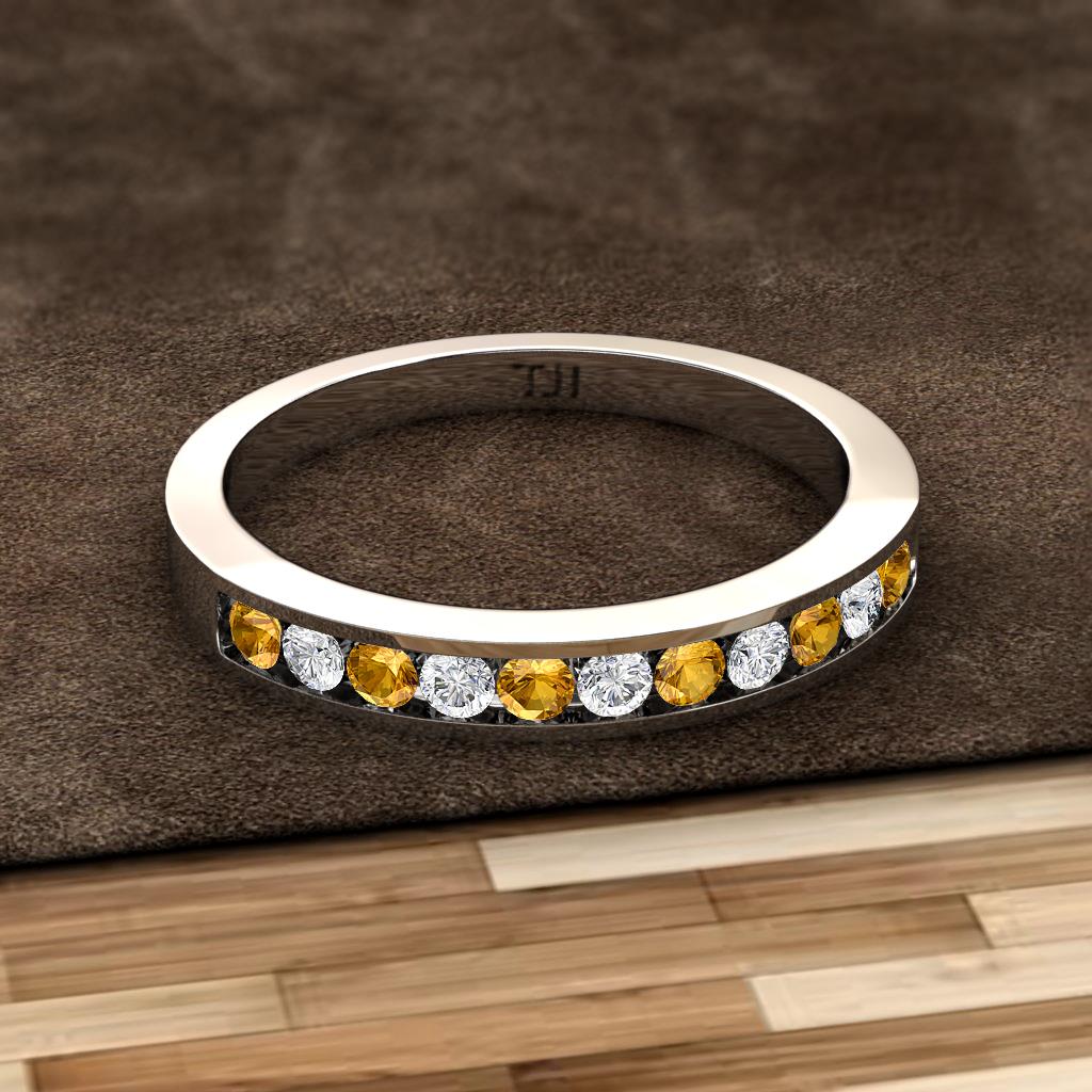 Shining with opulence and femine appeal,this 0.28 ctw Wedding Band inspires any attire with Glittering Round Channel Set Citrine and Lab Grown Diamond making your Wedding day more Enduring.
