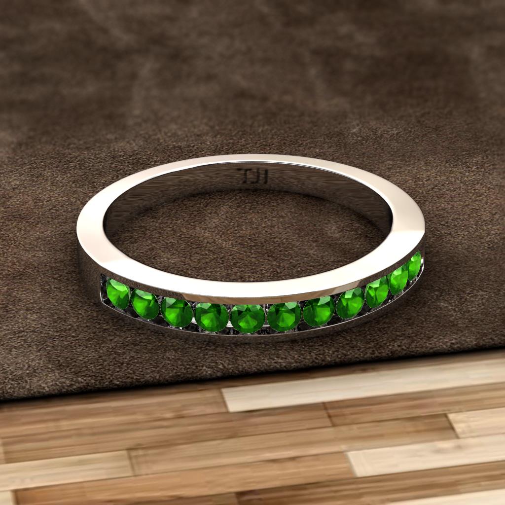 Shining with opulence and femine appeal,this 0.40 Carat tw Wedding Band inspires any attire with Glittering Round Channel Set Green Garnet making your Wedding day more Enduring.