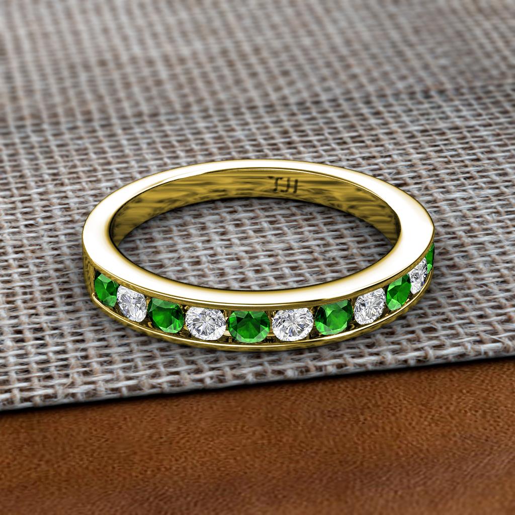 Green Garnet and Lab Grown Diamond 1 1/5 ctw 11 Stone Channel Set Womens Wedding Band Stackable 10K Yellow Gold More Details ...