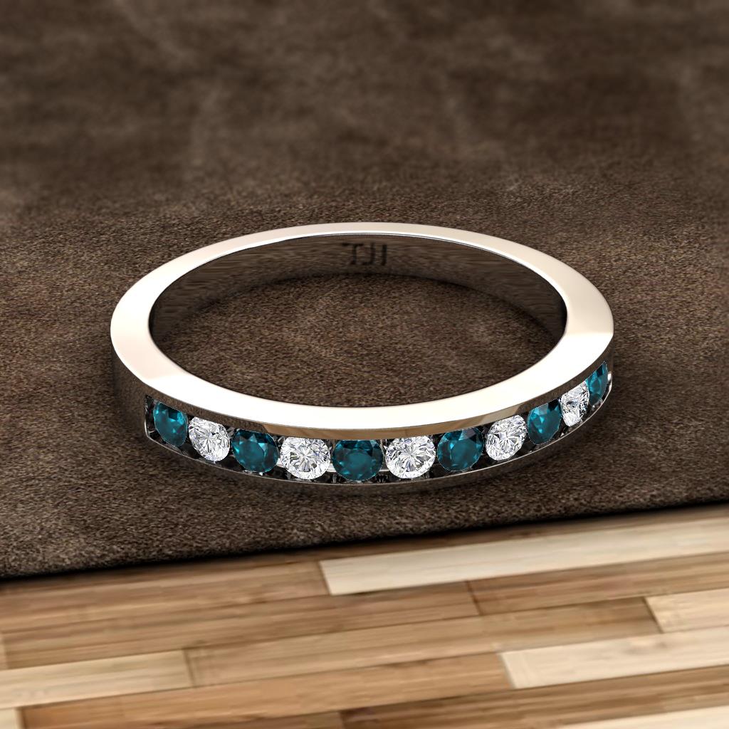 Shining with opulence and femine appeal,this 0.30 ctw Wedding Band inspires any attire with Glittering Round Channel Set London Blue Topaz and Lab Grown Diamond making your Wedding day more Enduring.