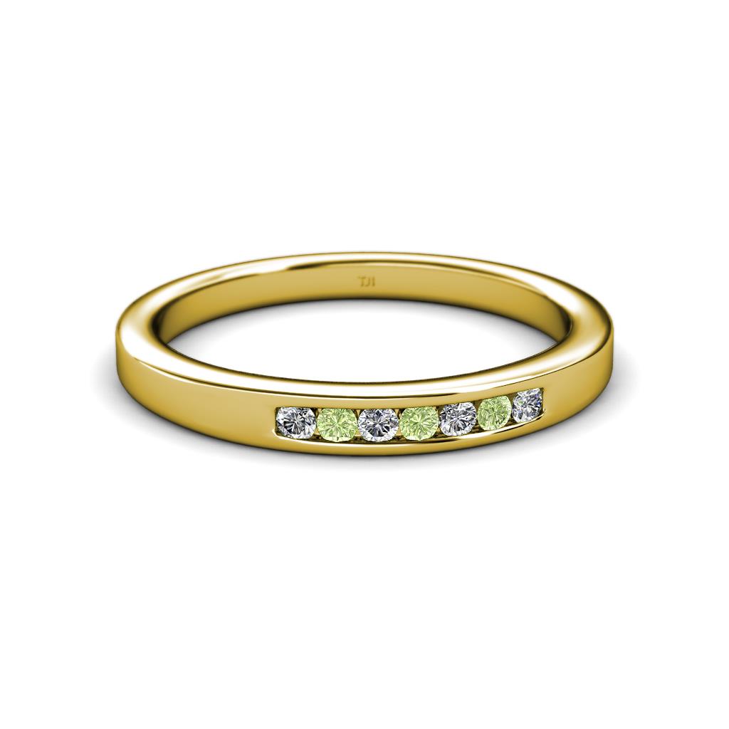 Peridot and Lab Grown Diamond 7 Stone Channel Set Womens Wedding Band Stackable 0.23 ctw 10K Yellow Gold More Details ...