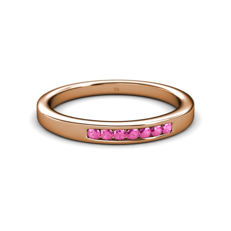Pink Sapphire 7 Stone Channel Set Womens Wedding Band Stackable 0.22 ctw 10K Rose Gold More Details ...