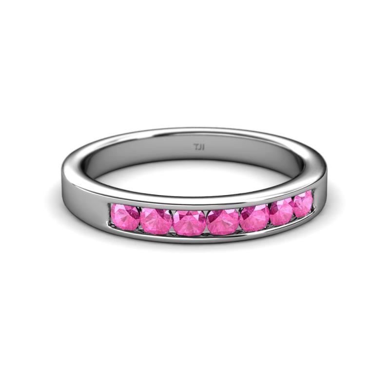 Pink Sapphire 7 Stone Channel Set Womens Wedding Band Stackable 0.74 ctw 10K White Gold More Details ...