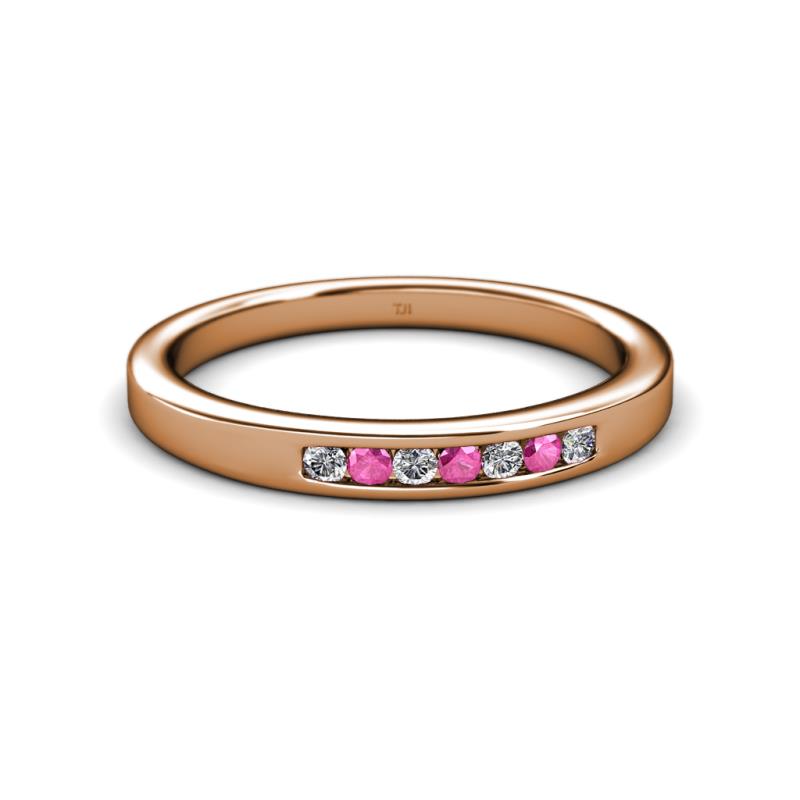 Pink Sapphire and Lab Grown Diamond 7 Stone Channel Set Womens Wedding Band Stackable 0.21 ctw 18K Rose Gold More Details ...