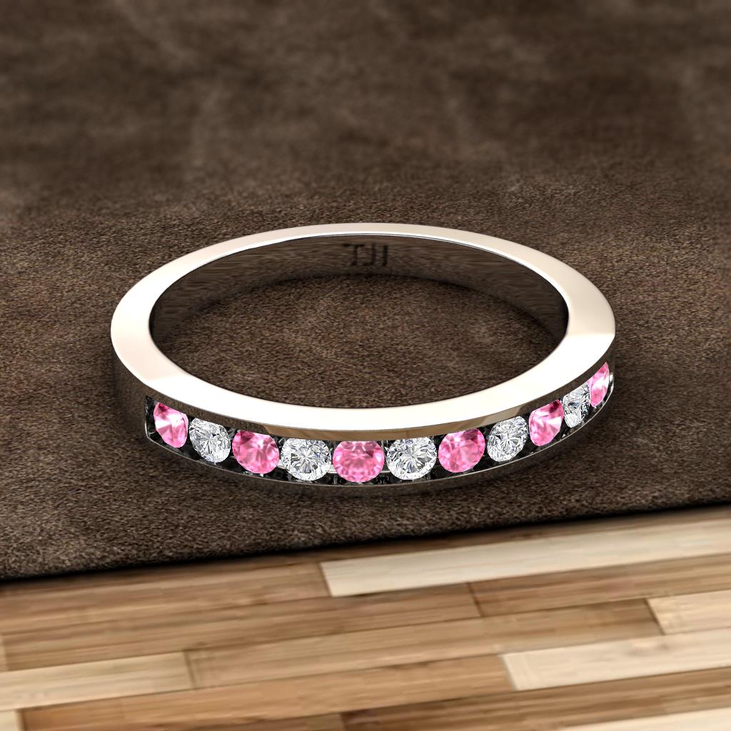Pink Sapphire and Lab Grown Diamond 11 Stone Channel Set Womens Wedding Band Stackable 0.34 ctw 10K White Gold More Details ...