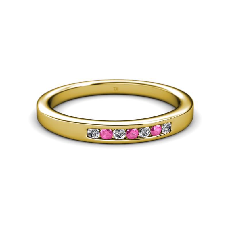 Pink Sapphire and Lab Grown Diamond 7 Stone Channel Set Womens Wedding Band Stackable 0.21 ctw 10K Yellow Gold More Details ...