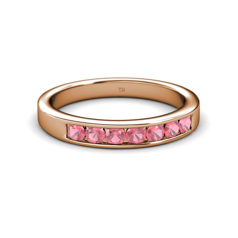 Pink Tourmaline 7 Stone Channel Set Womens Wedding Band Stackable 0.73 ctw 18K Rose Gold More Details ...