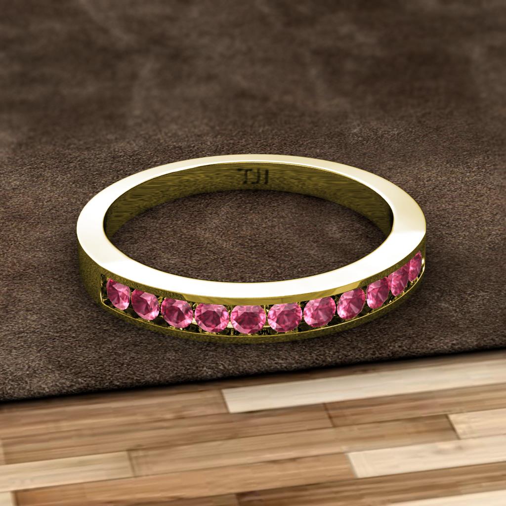 Pink Tourmaline 11 Stone Channel Set Womens Wedding Band Stackable 0.24 ctw 10K Yellow Gold More Details ...