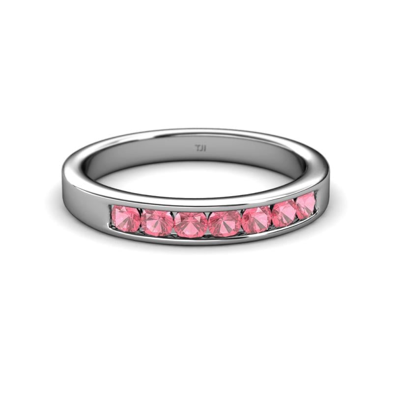 Pink Tourmaline 7 Stone Channel Set Womens Wedding Band Stackable 0.73 ctw 10K White Gold More Details ...