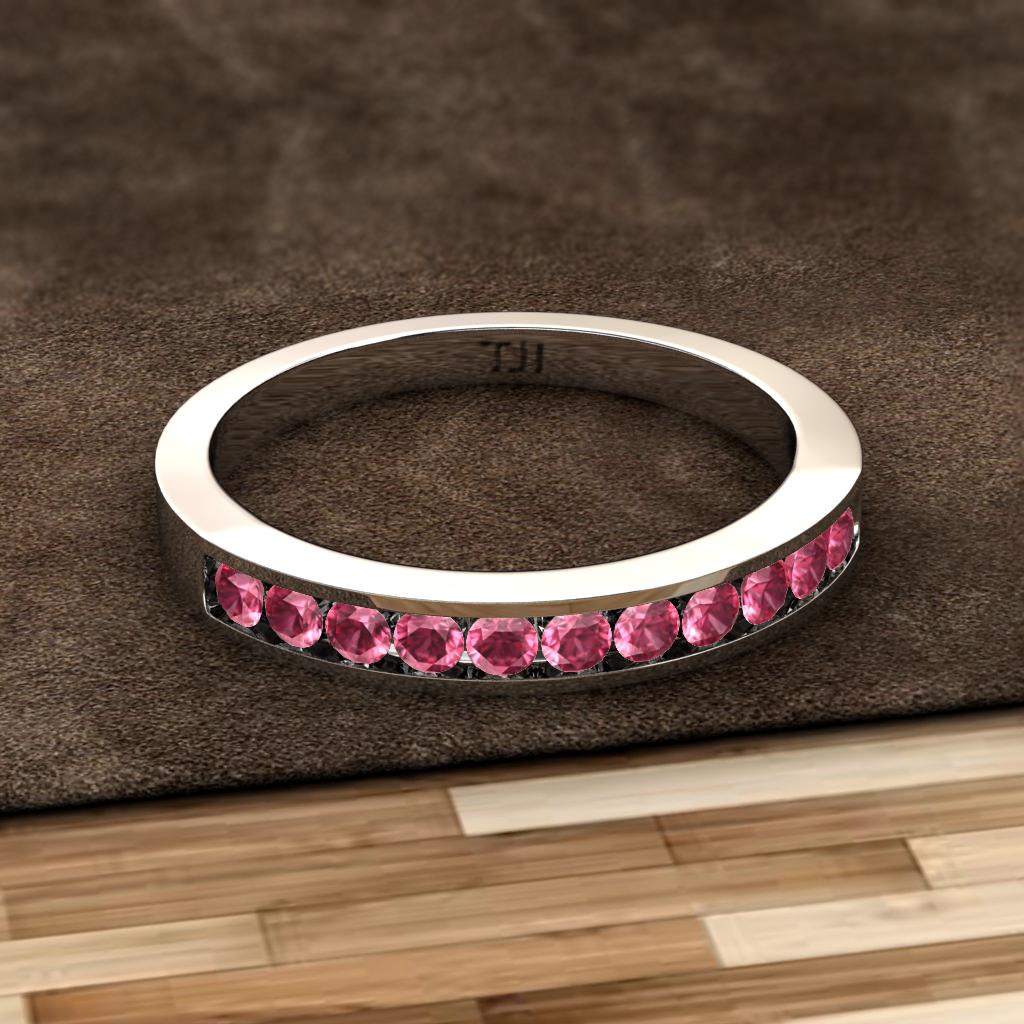 Pink Tourmaline 11 Stone Channel Set Womens Wedding Band Stackable 0.24 ctw Sterling Silver More Details ...