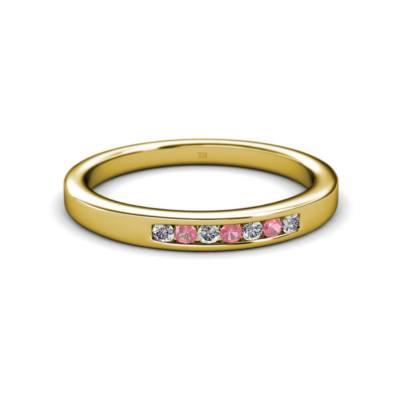 Pink Tourmaline and Lab Grown Diamond 7 Stone Channel Set Womens Wedding Band Stackable 0.19 ctw 10K Yellow Gold More Details ...