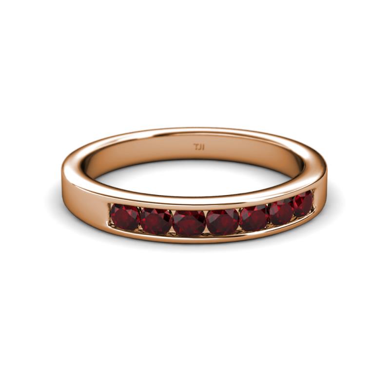 Red Garnet 7 Stone Channel Set Womens Wedding Band Stackable 0.81 ctw 18K Rose Gold More Details ...