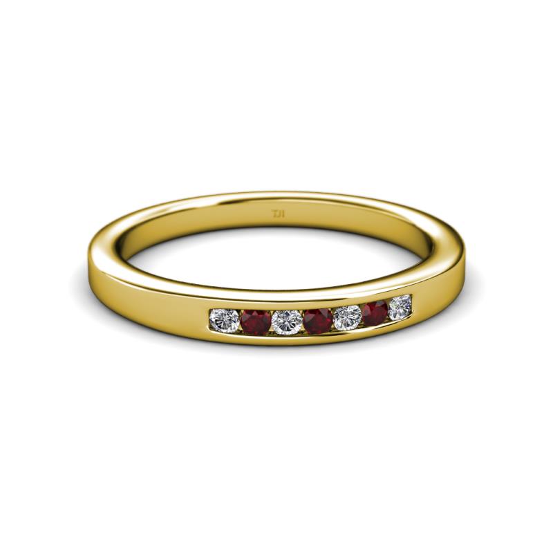 Red Garnet and Lab Grown Diamond 7 Stone Channel Set Womens Wedding Band Stackable 0.23 ctw 10K Yellow Gold More Details ...