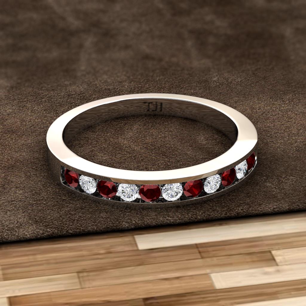 Red Garnet and Lab Grown Diamond 11 Stone Channel Set Womens Wedding Band Stackable 0.37 ctw Sterling Silver More Details ...