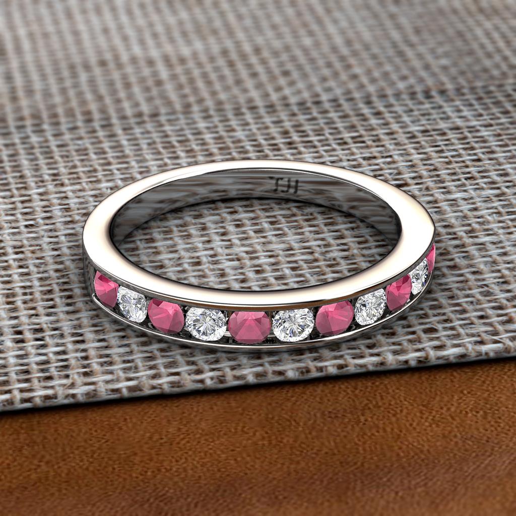 Rhodolite Garnet and Lab Grown Diamond 1 1/5 ctw 11 Stone Channel Set Womens Wedding Band Stackable 10K White Gold More Details ...