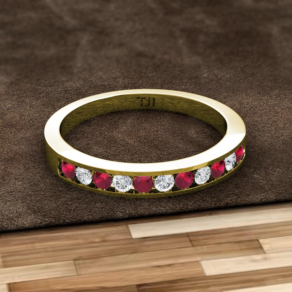 Ruby and Diamond 11 Stone Channel Set Womens Wedding Band Stackable 0.34 ctw 14K Yellow Gold More Details ...
