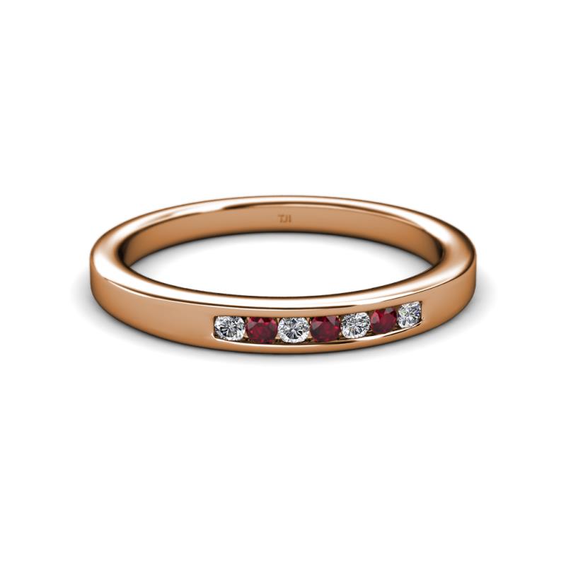 Ruby and Lab Grown Diamond 7 Stone Channel Set Womens Wedding Band Stackable 0.21 ctw 10K Rose Gold More Details ...
